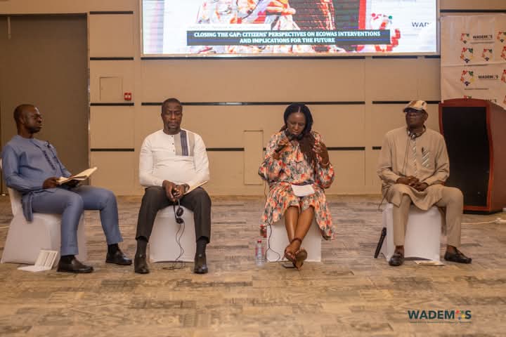 Photo des membres du panel « points de vue des citoyens sur les interventions de la CEDEAO et implications pour l’avenir  » Crédit: WADEMOS.